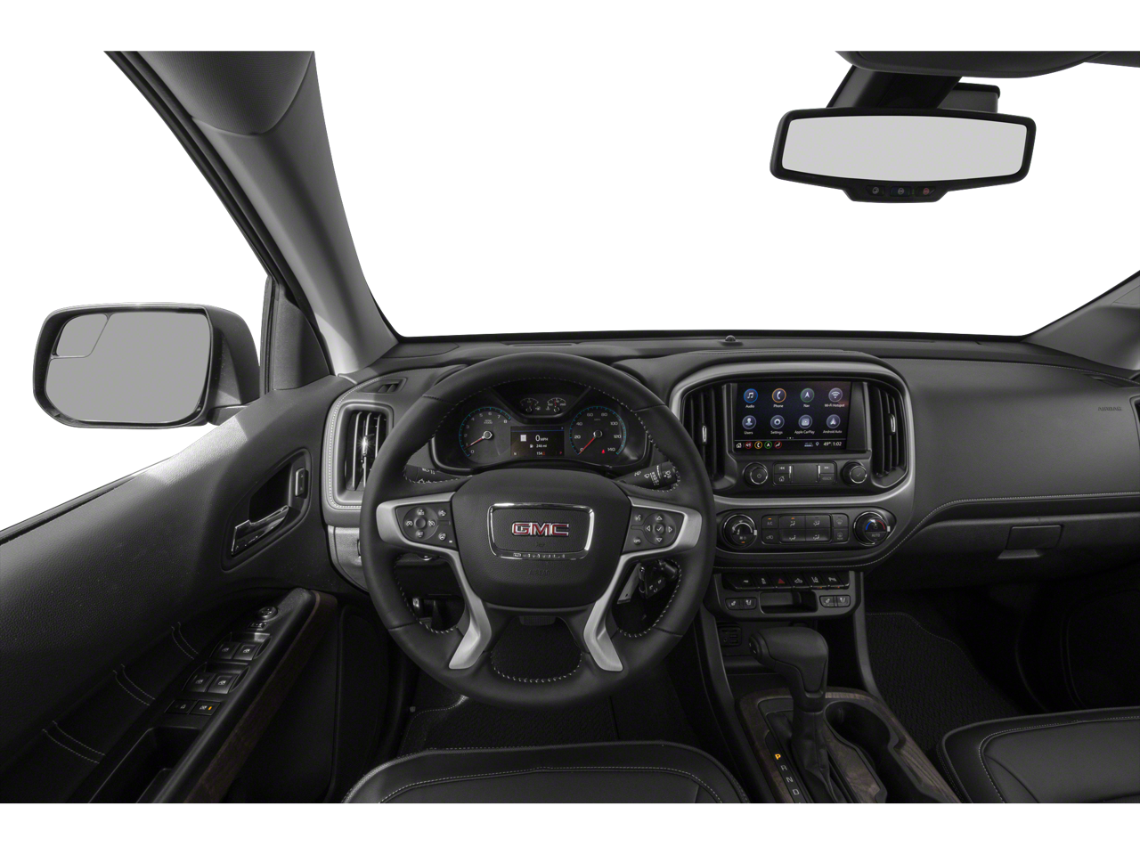 4WD, 1st & 2nd Rows All-Weather Floor Liner (LPO), 2 USB Data Ports, 3.42 Rear Axle Ratio, 4-Way Power Front Passenger Seat Adjuster, 4-Wheel Disc Brakes, 5 Rectangular Chrome Assist Steps, 7 Speakers, ABS brakes, Air Conditioning, Alloy wheels, AM/FM radio: SiriusXM with 360L, Apple CarPlay/Android Auto, Auto-dimming Rear-View mirror, Automatic temperature control, Black Spray-On Bedliner w/GMC Logo, Bose Premium 7-Speaker Audio System Feature, Bumpers: body-color, Compass, Delay-off headlights, Driver 6-Way Power Seat Adjuster, Driver Alert Package, Driver door bin, Driver vanity mirror, Dual front impact airbags, Dual front side impact airbags, Electronic Stability Control, Exterior Parking Camera Rear, Forward Collision Alert, Front anti-roll bar, Front Bucket Seats, Front Center Armrest, Front fog lights, Front License Plate Kit, Front reading lights, Front wheel independent suspension, Fully automatic headlights, Genuine wood console insert, Genuine wood door panel insert, HD Radio, Heated door mirrors, Heated Driver & Front Passenger Seats, Heated front seats, Heated Steering Wheel, Heated steering wheel, Hitch Guidance, Illuminated entry, Integrated Trailer Brake Controller, Lane Departure Warning System, Low tire pressure warning, Navigation System, Occupant sensing airbag, Outside temperature display, Overhead airbag, Overhead console, Panic alarm, Passenger door bin, Passenger vanity mirror, Perforated Leather-Appointed Seat Trim, Performance Skid Plate Package (LPO), Polished Exhaust Tip, Power door mirrors, Power Driver Lumbar Control Seat Adjuster, Power driver seat, Power Passenger Lumbar Control Seat Adjuster, Power passenger seat, Power steering, Power windows, Preferred Equipment Group 4SD, Premium audio system: GMC Infotainment System, Radio data system, Radio: AM/FM w/8 Diagonal Multi-Touch Display Nav, Rear reading lights, Rear seat center armrest, Rear step bumper, Rear window defroster, Remote keyless entry, Security system, SiriusXM Radio, Speed control, Speed-sensing steering, Steering wheel mounted audio controls, Tachometer, Telescoping steering wheel, Tilt steering wheel, Tow/Haul Mode, Traction control, Trailering Package, Trip computer, Ultrasonic Rear Parking Assist, Variably intermittent wipers, Ventilated Driver Seat, Ventilated Front Passenger Seat, Ventilated front seats, Wheel Locks (Set of 4) (LPO), Wheels: 20 x 8.5 Diamond Cut Machined Aluminum, 4WD.