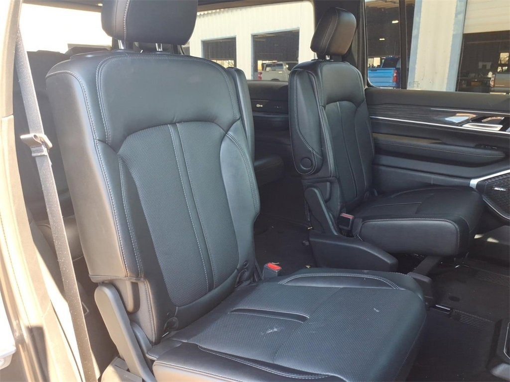 10 Speakers, 3.21 Rear Axle Ratio, 3rd row seats: bench, 4-Wheel Disc Brakes, 7-Passenger Seating, ABS brakes, Adjustable pedals, Air Conditioning, Alloy wheels, AM/FM radio: SiriusXM with 360L, Anti-whiplash front head restraints, Audio memory, Auto High-beam Headlights, Auto-dimming door mirrors, Auto-dimming Rear-View mirror, Auto-leveling suspension, Automatic temperature control, Brake assist, Bumpers: body-color, Compass, Delay-off headlights, Driver door bin, Driver vanity mirror, Driver's Seat Mounted Armrest, Dual front impact airbags, Dual front side impact airbags, Electronic Stability Control, Exterior Parking Camera Rear, Flexible Seating Group, Floor Console w/Cupholder, Four wheel independent suspension, Front anti-roll bar, Front Bucket Seats, Front Center Armrest w/Storage, Front dual zone A/C, Front fog lights, Front reading lights, Fully automatic headlights, Garage door transmitter, Genuine wood console insert, Genuine wood dashboard insert, Genuine wood door panel insert, Heads-Up Display, Heated door mirrors, Heated front seats, Heated rear seats, Heated steering wheel, Illuminated entry, Knee airbag, Leather Trimmed Bucket Seats, Low tire pressure warning, Memory seat, Navigation System, Normal Duty Suspension, Occupant sensing airbag, Outside temperature display, Overhead airbag, Overhead console, Panic alarm, Passenger door bin, Passenger seat mounted armrest, Passenger vanity mirror, Pedal memory, Power adjustable front head restraints, Power door mirrors, Power driver seat, Power Liftgate, Power passenger seat, Power steering, Power Tip/Slide Recline 2nd Row Buckets, Power windows, Quick Order Package 22N, Radio data system, Radio: Uconnect 5 Nav w/10.1 Display, Rain sensing wipers, Rear air conditioning, Rear anti-roll bar, Rear dual zone A/C, Rear reading lights, Rear seat center armrest, Rear window defroster, Rear window wiper, Reclining 3rd row seat, Remote keyless entry, Security system, Speed control, Speed-sensing steering, Speed-Sensitive Wipers, Split folding rear seat, Steering wheel memory, Steering wheel mounted audio controls, Tachometer, Telescoping steering wheel, Tilt steering wheel, Traction control, Trip computer, Turn signal indicator mirrors, Variably intermittent wipers, Ventilated front seats, Voltmeter, Wheels: 20 x 9.0 Premium 2 Aluminum.