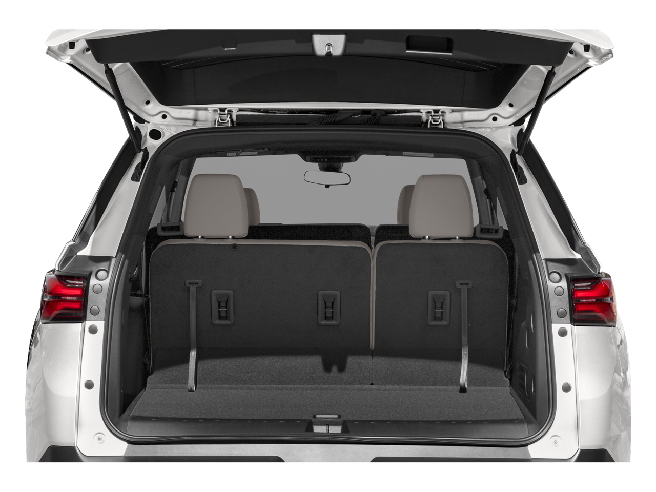 2-Way Manual Front Passenger Seat Adjuster, 3.49 Axle Ratio, 3rd row seats: split-bench, 4-Wheel Disc Brakes, 6 Speakers, 6-Speaker Audio System Feature, 6-Way Manual Driver Seat Adjuster, ABS brakes, Air Conditioning, Alloy wheels, AM/FM radio: SiriusXM, Apple CarPlay/Android Auto, Auto High-beam Headlights, Automatic temperature control, Brake assist, Bumpers: body-color, Compass, Delay-off headlights, Driver door bin, Driver vanity mirror, Dual front impact airbags, Dual front side impact airbags, Electronic Stability Control, Emergency communication system, Exterior Parking Camera Rear, Four wheel independent suspension, Front anti-roll bar, Front Bucket Seats, Front Center Armrest, Front dual zone A/C, Front License Plate Bracket Mounting Package, Front reading lights, Fully automatic headlights, Heated door mirrors, Illuminated entry, Lane Change Alert w/Side Blind Zone Alert, Low tire pressure warning, Not Equipped w/Rear Park Assist (060), Occupant sensing airbag, Outside Heated Power-Adjustable Mirrors, Outside temperature display, Overhead airbag, Overhead console, Panic alarm, Passenger door bin, Passenger vanity mirror, Power door mirrors, Power steering, Power windows, Preferred Equipment Group 1LS, Premium Cloth Seat Trim, Radio data system, Radio: Chevrolet Infotainment System AM/FM Stereo, Rear air conditioning, Rear anti-roll bar, Rear Cross Traffic Alert, Rear Park Assist w/Audible Warning, Rear reading lights, Rear window defroster, Rear window wiper, Remote keyless entry, Safety Package, Security system, SiriusXM Radio, Speed control, Speed-sensing steering, Split folding rear seat, Spoiler, Steering wheel mounted audio controls, Tachometer, Telescoping steering wheel, Tilt steering wheel, Traction control, Trip computer, Variably intermittent wipers, Voltmeter, Wheels: 18 Bright Silver Painted Aluminum.